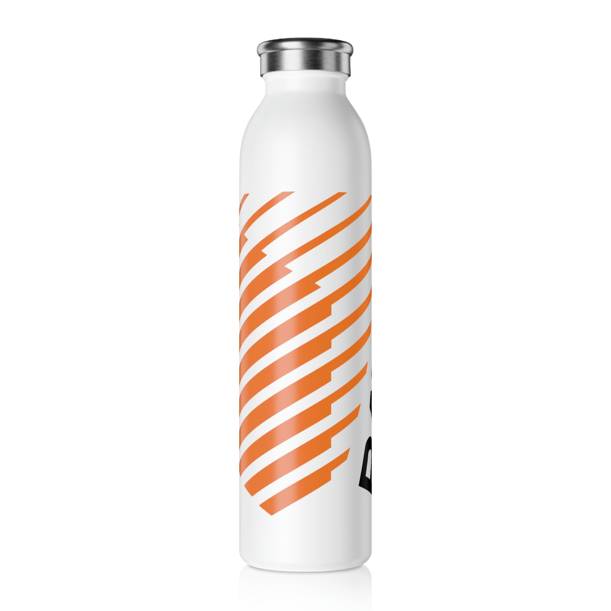 A slim stainless steel water bottle with a bold Rayno logo design.